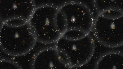 A team of researchers has measured the current size of “baryon acoustic oscillations” (BAOs) from the early universe in order to determine the distances to galaxies more than 6 billion light-years away to within 1 percent accuracy.