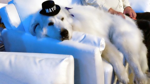 There’s also extra pampering at the groomer’s to prepare for official occasions. Think of it as payback for being trailed by local paparazzi as he scarfs a hamburger here and there on his rounds. The Daily Mail, being British, describes Hizzoner as “often seen eating hamburgers and chips in the village’s pub.” We presume they mean potato chips, but there really is a pub. Duke also has his own Facebook page.