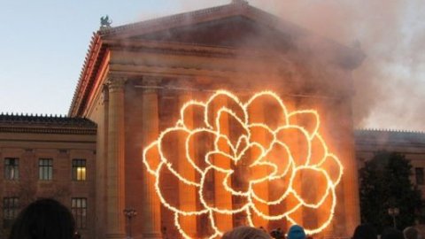 The word “explosive” is use to describe a lot of artists’ work. In the case of Cai Guo-Qiang, he actually earns the adjective. Last month, the Chinese artist inaugurated his Fallen Blossoms exhibition at the Philadelphia Museum of Art with a blast on the same steps that Sylvester Stallone’s Rocky character raced up. Literally drawing with gunpowder, and then igniting it, Cai challenges the staid art world to wake up and smell the pyrotechnics. His art sends shockwaves through the viewer and ignites the fuse to further musings.