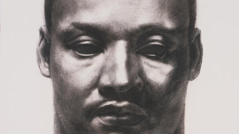 For those of us who didn’t live in the time that the moral giant Martin Luther King, Jr., walked the earth, we have only the pictures—the young, fiery preacher, the protest leader sitting in a Birmingham jail, the seas of people listening to the “I Have a Dream” speech, and, finally, the flock of arms and hands rising towards the source of the assassin’s bullet that left him in a pool of his own blood. On this day honoring Dr. King’s memory, I offer a different image—John Woodrow Wilson’s 1981 mammoth charcoal portrait, Martin Luther King, Jr. (pictured).