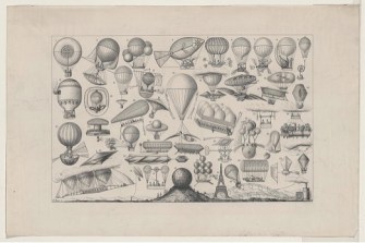 1884. Balloons, airships, and other flying machines designed with some form of propulsion.