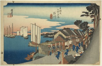 During Japan’s Edo period that lasted from 1603 to 1868, there was a road between two capitals: shōgun’s capital, Edo, and the imperial capital, Kyōto. It was called the Tōkaidō Road. The 514 kilometres road passed along the picturesque sea coast of eastern Honshū. Despite the long distance, travellers usually moved by foot or cago (a kind of a stretcher carried by bearers from the non-samurai class). Along the road, there were 53 stations providing rest