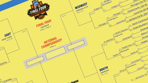 The 2017 March Madness bracket for the NCAA men's Division basketball tournament.