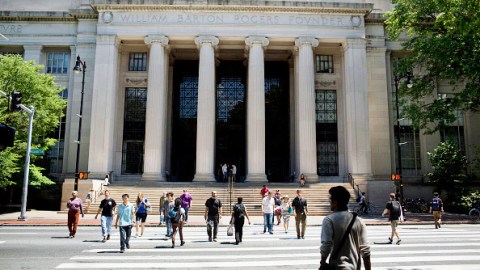 Pedestrians cross the street in front of the William Barton Rogers Building at the Massachusetts Institute of Technology (MIT) campus in Cambridge, Massachusetts, U.S., on Tuesday, June 30, 2015. Massachusetts Institute of Technology, founded in 1861, is traditionally known for its research and education in the physical sciences and engineering, and more recently in biology, economics, linguistics, and management as well. Photographer: Victor J. Blue/Bloomberg via Getty Images