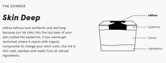 Inkbox says its ink comes from the Genipa Americana plant, a type of tree found in tropical forests, which native peoples have used in tattooing and “body ornamentation for thousands of years.”