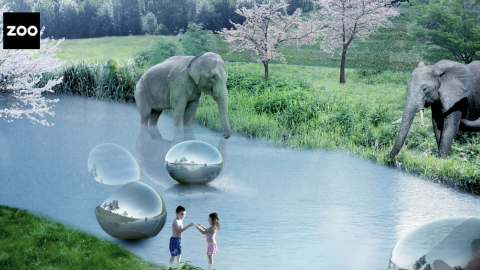The concept, whose first stage will be realized by 2019, reminds of a safari brought to the city. The zoo is designed to mimic the natural habitat of the animals as closely as possible, hiding the buildings in the landscape. While the animals roam “free”, it is the human spectators that are “captive”, watching unobtrusively from under or above ground, from behind bamboo screens, or enclosed in little mirrored pods.