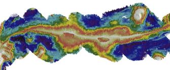 These undersea volcanoes are by no means unique, but they are rather large (50-km wide, 4000-m tall) and active. Just looking at their morphology (see image above), they look like large shield volcanoes, such as Kilauea or any of the volcanoes (like Cerro Azul) in the Galapagos – just not at the surface yet. The researchers point out that they could be seen as modern analogs to some of the large volcanogenic mineral deposits that are rich in gold and copper (and other metals).