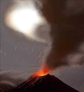 Tungurahua erupting in an undated AP photo (although I think it is the current 2010 activity.)