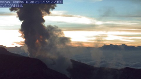 Top left: Webcam capture of activity at Costa Rica’s Turrialba on January 21, 2011. Image submitted by Eruptions reader Kirby.