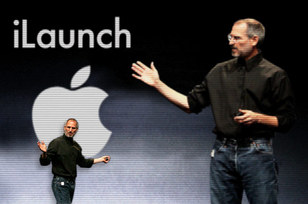 looking resplendent in a black turtleneck and faded jeans. “The iLaunch