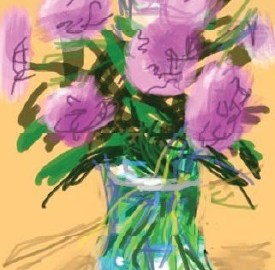 Apparently you can teach some old dogs new tricks. In a piece by Digital Planet producer Colin Grant, artist David Hockney discusses his love affair with his iPhone and iPad and how he uses those new technologies to create art (such as the example above). In a new exhibition titled Fleurs fraiches (“fresh flowers”) at La Fondation Pierre Bergé–Yves Saint Laurent in Paris, France, Hockney displays these new works together for the first time. It’s fascinating to watch such an established artist venture forth in a yet-to-be-established medium, lending it the “street cred” that it so sorely needs to combat critics who still cling to the old media as the only “true” art. Working directly with his fingers on the interfaces of his devices, Hockney brings art not only from his fingertips, but also puts it just a fingertip away for the viewer.
