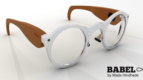 Babelfisk, an ingenious concept device by Danish designer Mads Sukhdev Hindhede, aims to do just that. The sleek hearing aid is housed in a pair of glasses, which use a receptive “listening” process to transcribe conversations in the surroundings as text messages displayed in the user’s line of sight. Two microphones affixed to the sides of the frames filter speech and embedded translation software display it as text via two projectors. The visualization also allows users to sense where sound is coming from, adding a layer of organic spatial orientation to the listening experience.