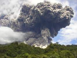 Ecuador’s Geophysical Institute is reporting that Reventador is currently erupting ash. Apparently, there is no threat to nearby Quito or any pipelines near the volcano. The volcano last erupted in 2007 (although the article incorrectly reports 2002) with small VEI 2 explosions and lava flows. The last major eruption was in 2002, a VEI 4 that spread ash over Quito and caused a number of fatalities. The 2002 eruption was an impressive one (see picture above), producing numerous lahars and a 17-km tall (~55,000 feet) ash column. This also makes two currently erupting volcanoes in Ecuador with the ongoing activity at Tungurahua.