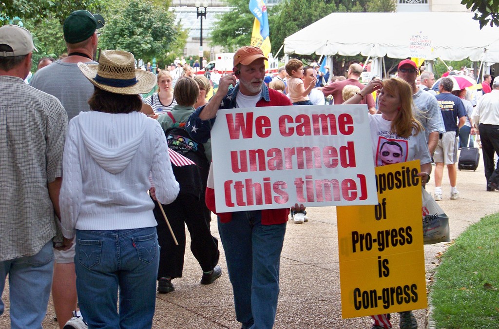 That summer the anti-reform leaders did everything they could to whip their supporters into a frenzied rage, including circulating lies about how Obama’s plan included “death panels” to bump off elderly relatives and free abortions for all. Remember the folks who made a point of toting their guns at peaceful protests? It was a calculated display of intimidation.
