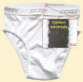 The example that comes to mind is the popular Nike running shoe that is attached to a sensor which tracks how much you run and automatically sends it to your profile on Nike.com, and will even tweet it and post it to your Facebook status. Actually, as the Do-It-Youself site Instructables shows, the sensor can be easily inserted in any shoe, so don’t let your loyalty to brands other than Nike stop you from partaking in this fun exercise. But the Nike shoe has been around for several years. The latest in this trend is clothing in which carbon nanofibers are directly embedded in the fabric. Joseph Wang at the University of California San Diego has developed a technique which allowed him to directly print biosensors onto men’s underwear. Wang hopes one day that these sensors could be used to communicate different biomedical indicators such as your stress level at any given time to anyone who might be interested in that information, like your doctor or your mom.