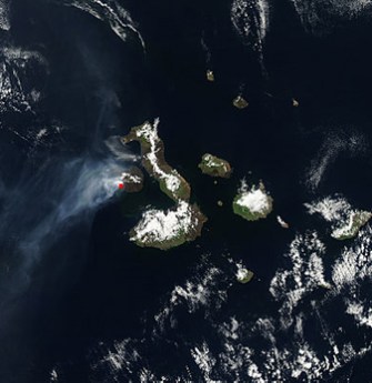 The latest reports about the ongoing eruption at Fernandina are both coming and going. Reports from officials in the Galapagos National Park suggest that the eruption was become more intense (in spanish), while later reports from the Geophysical Institute in Ecuador say that the eruption is waning. Both reports might be true and reflect the volatile nature of the eruption, but overall it seems that the wildlife (that probably is used to this sort of thing anyway) hasn’t been effected too much by the eruption.