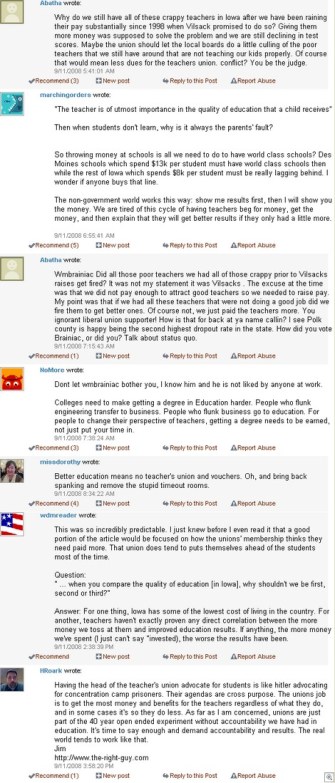 Over on the World Class Schools for Iowa blog, Linda Fandel of the Des Moines Registerinterviewed Chris Bern, new president of the Iowa State Education Association. At the end of the interview, Fandel asked Bern if teachers were treated with respect by students. Here is Bern’s reply: