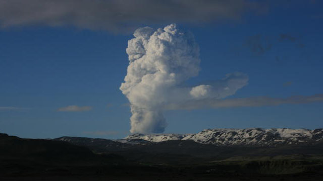 nThe coalesced vent of the Fimmvörðuháls fissure eruption in late March 2010.
