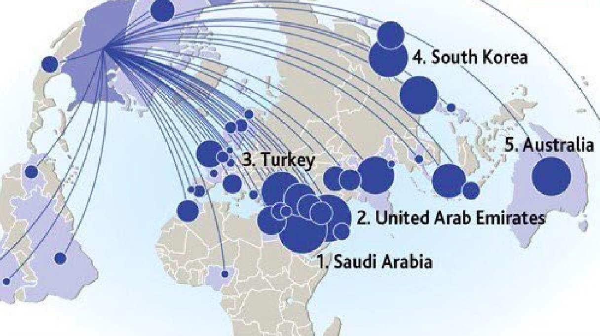 Despite a time of overall peace, the world is experiencing an arms race. Eastern powers especially are buying up arms at an alarming rate: “The Stockholm International Peace Research Institute report said India was pushing ahead with plans to modernise its military in an effort to counter China’s influence and gain international clout. India’s defence budget for the coming year is 1.5 trillion rupees ($32.5bn), a 40 per cent increase from two years ago. It imports more than 70 per cent of its weapons. The report said the vast majority of those imports—82 per cent—come from Russia, which has long been India’s supplier of choice.”