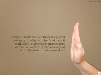 Another large barrier to students’ technology usage is teachers’ inability to effectively implement digital tools into their instruction. One of the dirty secrets of K-12 educational technology is that many of the computing devices that already have been purchased are rarely used. This may occur because of teachers’ lack of training; most educators need a lot more help in this area. Or it may occur because of a lack of adequate technology support, which results in teachers inability to rely on the technology actually working when they do decide to use it. Or it may occur because of teachers’ outright refusal to integrate technology because of lack of interest or comfort.