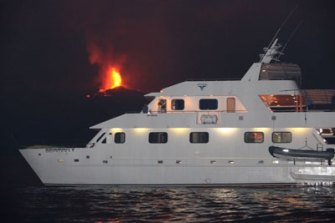 Fernandina in the Galapagos erupting in April 2009. Photo by Harald Schmidt