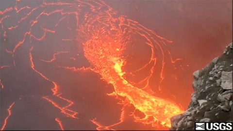 The lava lake at the Halema`uma`u Crater has been very active over the last week and a lava flow has been feeding directly into the lava lake. HVO has released some great video of the lava streams entering the lava lake, impressively disrupting the cooling crust of the lava lake. Overall, however, the lava lake levels at the summit crater have been dropping as deflation has continued. Over at Pu`u O`o, the perched lava lake is still active as well. Successive overflows of the perched lava lake have raised the floor of the crater to 128 feet from the edge of the rim, up over 40 feet in the last week.