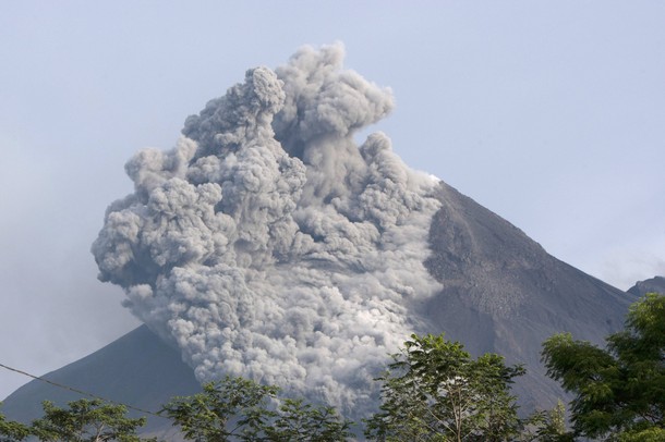 Top left: A pyroclastic flow on Merapi on October 29, 2010.