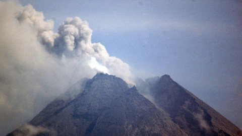 Top left: The steaming summit of Merapi. Image from December 5, 2010.