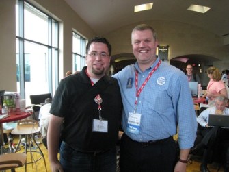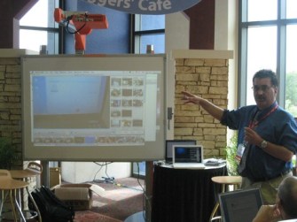 Dean Shareski’s a sharp cookie, Carolyn Foote’s my savior, Miguel Guhlin’s a beach bum, and Doug Johnson’s a curmudgeon. David Jakes is under the bus, Cheryl Oakes likes cobbler, and Jon Becker likes waffles. Sylvia Martinez is a rock star, and Jeff Utecht is … hey, where’s Jeff? Darren Draper’s on the A list and I proudly hung with someguys on the D list. I tell you, NECC 2008 was smokin’ hot!
