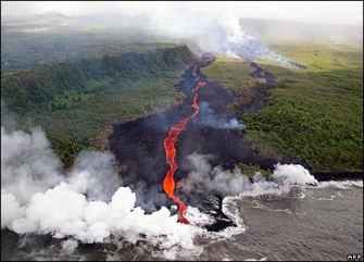 It seems that a new fissure eruption has begun at Piton de la Fournaise on Reunion Island in the Indian Ocean*. In fact, the report goes onto say that a small lava lake has formed at the main crater of the eruption. This marks the first eruption at Piton de la Fournaise since March 2007.