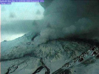 AVO has posted a series of images taken around Redoubt and around the Cook Inlet since the new eruptions started the night of March 22nd. You can begin to see the extent of the ash fall, what the explosions have done to the Drift Glacier and the new deposits in the Drift River valley. Most of the images show a lot of meltwater mudflows and tephra deposits on the slopes of the volcano. They’ve also added images from satellite and radar sources that show the initial dispersal of ash from the eruptions throughout the area north of Redoubt.
