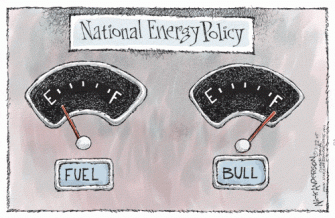 Finally, here’s an interesting and relevant aside.Click on this link for a google image search on “energy policy.” Notice that many of the top hits are political cartoons. It’s an indication that this is a tough story to dramatize. For one reason, the term itself “energy policy” has no easily defined meaning. And second, it’s maybe the toughest thing to put into visuals and pictures. Political cartoonists have it easy. They make up their own pictures, and their medium is tailor made to take any issue, no matter how complex, and just focus on the conflict and personalities involved. While opinion page pundits and some political reporters might have similar license, science reporters don’t.