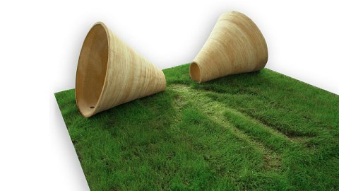 Part industrial design, part public art installation, the playful sound device resembles a pair of giant ears made entirely of terracotta and uses resonance to churn out sinusoidal waves in rhythmic, repetitive oscillation, producing soft, soothing sounds channeled directly into the listener’s ears.