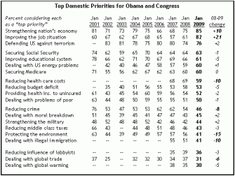 Call it a case of extreme optimistic bias: Many climate advocates point to polls that show when the public is asked directly, a majority say they are “concerned” about global warming and favor action. But what’s missing from this poll assessment is where global warming sits relative to other political priorities. When you examine this comparison, public support for action turns up as soft, even among Dems and Independents, suggesting that it will be very difficult for Obama to rally the needed public input to pass meaningful legislation through Congress.