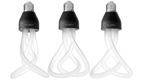 Composed of two elegantly interwoven fluorescent tubes, the bulb uses 80% less energy a traditional incandescent one does and offers eight times the lifespan.The Plumen features two elegant interlocking fluorescent tubes, uses 80 percent less energy than an incandescent bulb, and is expected to last for eight years.