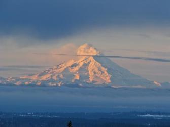 The steam plume from the new dome on Redoubt, taken in January 2010. Image courtesy of USGS/AVO, taken by Dennis Anderson.