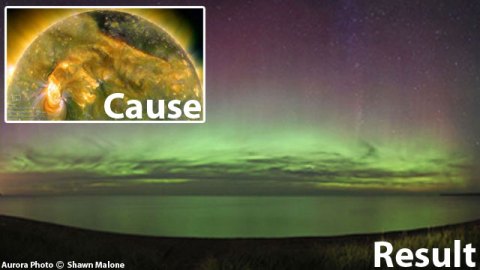 August 1st was the day that almost the entire side of the Sun that faces the Earth had a bit of a temper tantrum known as a “coronal mass ejection” or (CME). Although the eruption—described by astronomers as a Class C3 eruption—didn’t cause any damage to Earth, it gave us a show of the glowing displays of curtains and streamers of multi-colored light. Larger flare-ups, referred to as “M” or “X” class, are the ones we really need to worry about. In a previous blog post—“A Possible Solar Storm in 2012?”—I touched a bit on the massive 1859 solar storm (The Carrington Flare) that paralyzed our telegraph wires. This is a prime example of the size of solar storm that we need to worry about. Satellites, global communication, GPS, the Internet would be disrupted. Whole continents would be without power. Another geomagnetic storm in 1989 caused a major shut down of Quebec’s power grid causing over 5 million people to be without electricity.