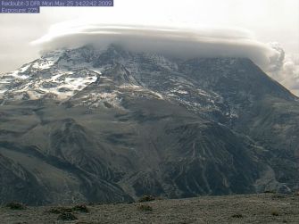 Lenticular clouds forming over Redoubt on May 25, 2009. Image courtesy of AVO/USGS and sent to me by Eruptions reader Todd Russell.