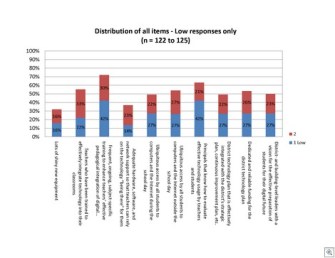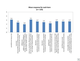 I also looked at the distribution of responses within each item. For example, over 70% of the participants gave low responses to their district’s technology integration-related staff development.