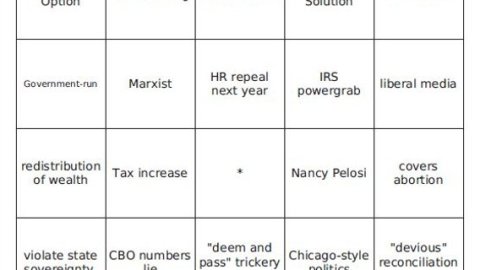 I watched TV last night with a buddy of mine whose wife is out of town. That means we got to drink beers and curse at the people on TV without restraint. Which is a good thing, because we watched FOX News for almost two hours. As you can imagine, there was a whole lot of cursing going on, when we weren’t laughing. My buddy cracked up when I told him about my imaginary “right wing talking point bingo card” that I automatically pulled out whenever I watched FOX News.