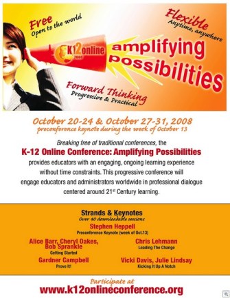 Quit reading this blog. Instead you should be over at the K12 Online Conference – watching, listening, reading, discussing now get outta here!