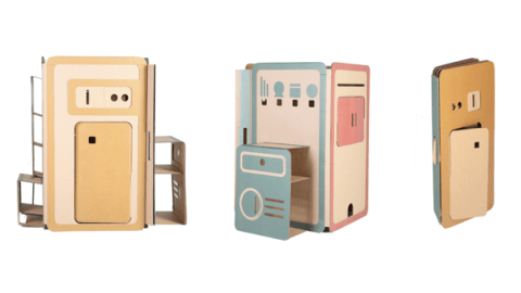 Designed specifically with the space limitations of urban apartments in mind, the compact play room is fully collapsible, requiring minimal storage and fitting comfortably under a bed or behind a door. It is made entirely out of cardboard and is 100% recyclable.