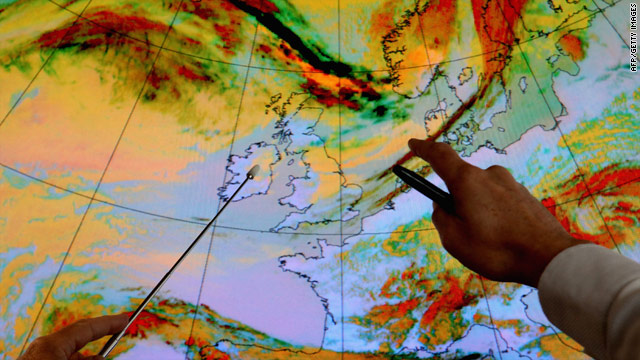 nThe ash from the Eyjafjallajökull eruption as it spreads over Europe on April 15, 2010.