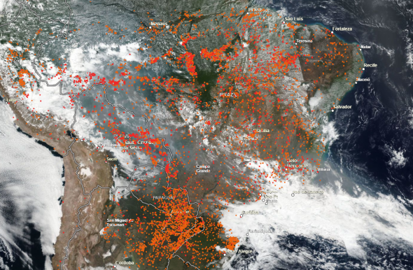Experts say most of the fires were ignited by humans — likely by farmers and ranchers to clear land, which is an annual practice. However, the current number of fires in Brazil is unusually high, with more than 73,000 so far in 2019 –= an 80 percent increase from 2018. Half of those fires started in the past month.