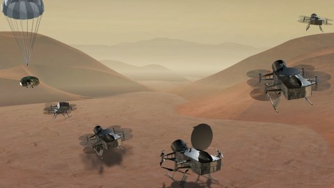 “If you put on wings, you’d be able to fly on Titan,” Turtle said, adding that cameras aboard the craft will let NASA simultaneously take photos both of what’s under and ahead of the rotorcraft.