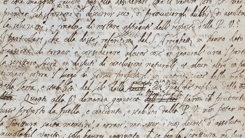 As it turns out, Galileo pulled some punches after he wrote the first draft that was sent to Castelli — a copy of which was sent to the Inquisition in Rome. In a recently rediscovered second draft, Galileo’s hand can seen blotting out some of the harsher phrases of the original letter, substituting them with open-ended ones. For example, in reference to certain biblical claims, he crossed out the word “false” and substituted “look different from the truth.”