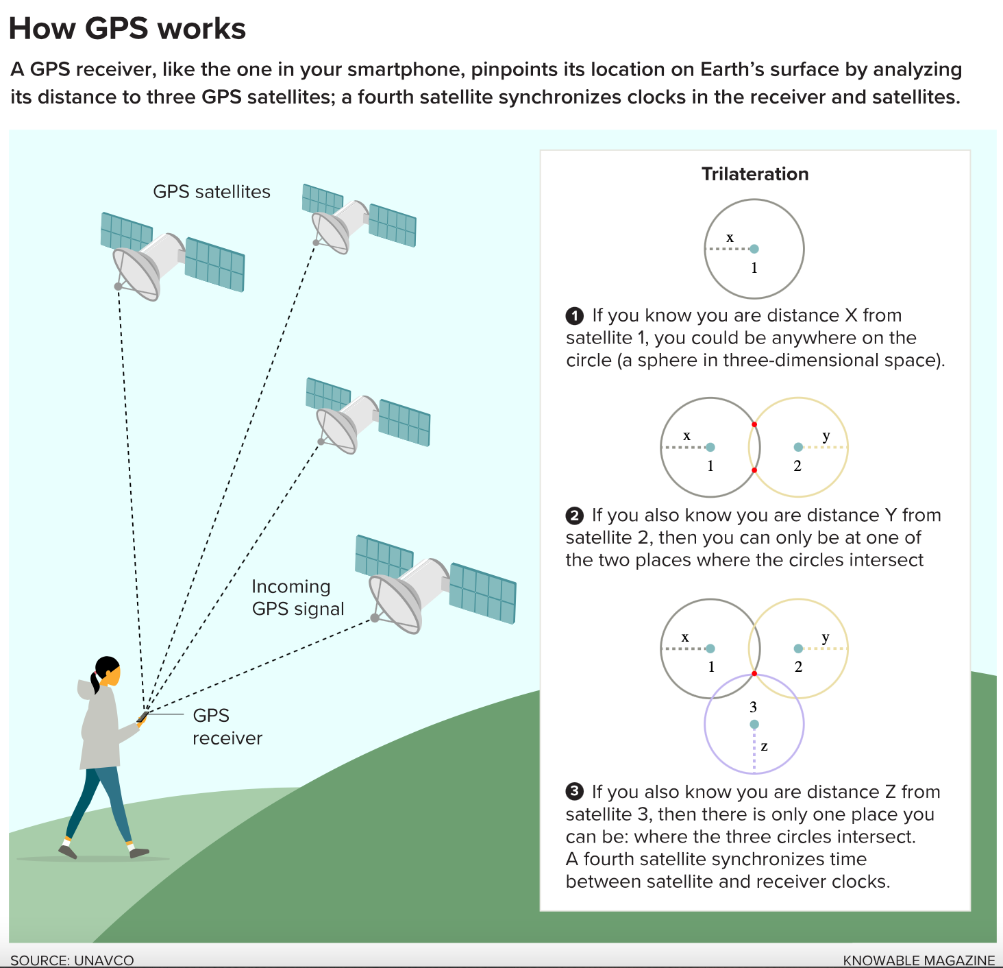 A typical GPS receiver, like the one in your smartphone, mostly picks up signals that are coming directly from GPS satellites overhead. But it also picks up signals that have bounced on the ground you’re walking on and reflected up to your smartphone.
