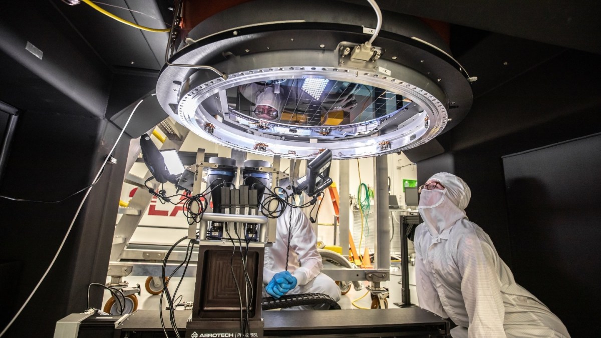 Once assembled, the focal plane was put inside a custom-built cryostat for cooling — the required operating temperature is -150° F.