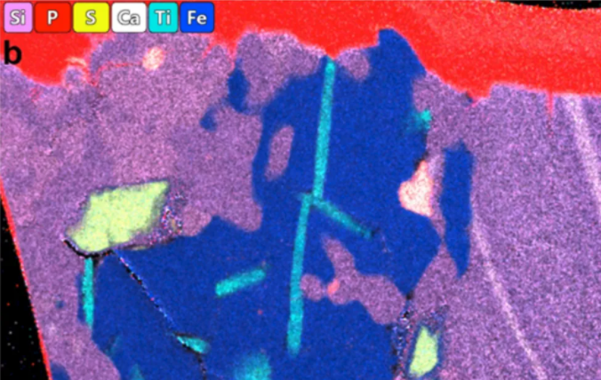 The high-angle annular dark-field (HAADF) scanning transmission electron microscopy (STEM) image of the focused ion beam (FIB) section extracted for STEM analysis from the NWA 7034 fragment used in this studyCredit: Milojevic et al.