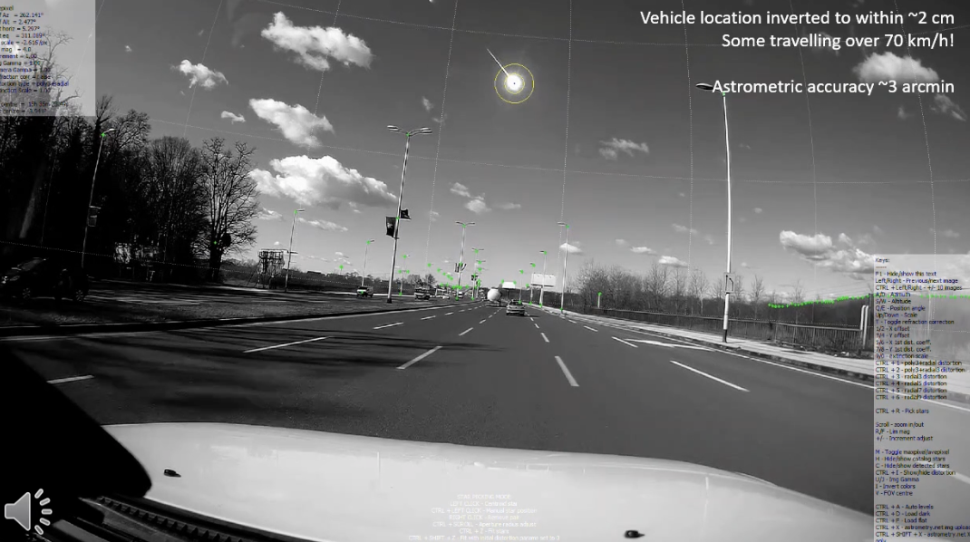It was not easy. For example, some of the footage was captured by dashcams recording video as the cars were driving about 40 mph. This normally would not make things too difficult, considering that astronomers can pinpoint the position of space objects by comparing their movements and brightness to stars in the night sky.